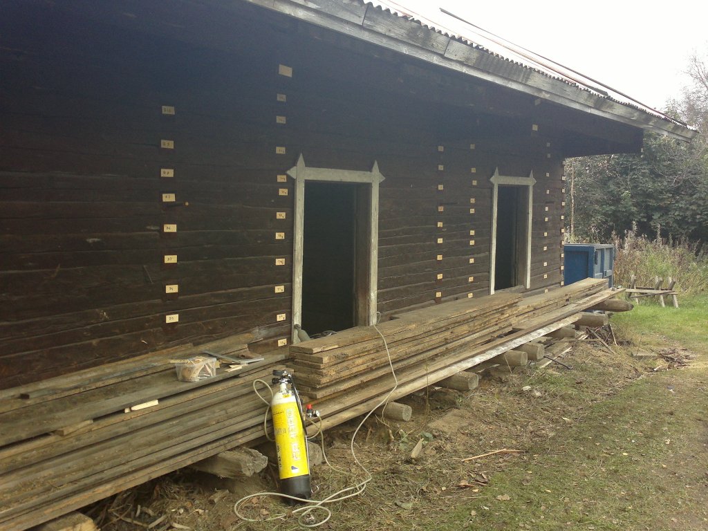 Vanha aitta on purkuvalmiina. Jokainen seinä ja nurkka on mitattu ja kuvattu sekä jokaista lattialankkua ja hirttä myöten merkattu ja luetteloitu kuntomerkintöineen hirsikarttaan.