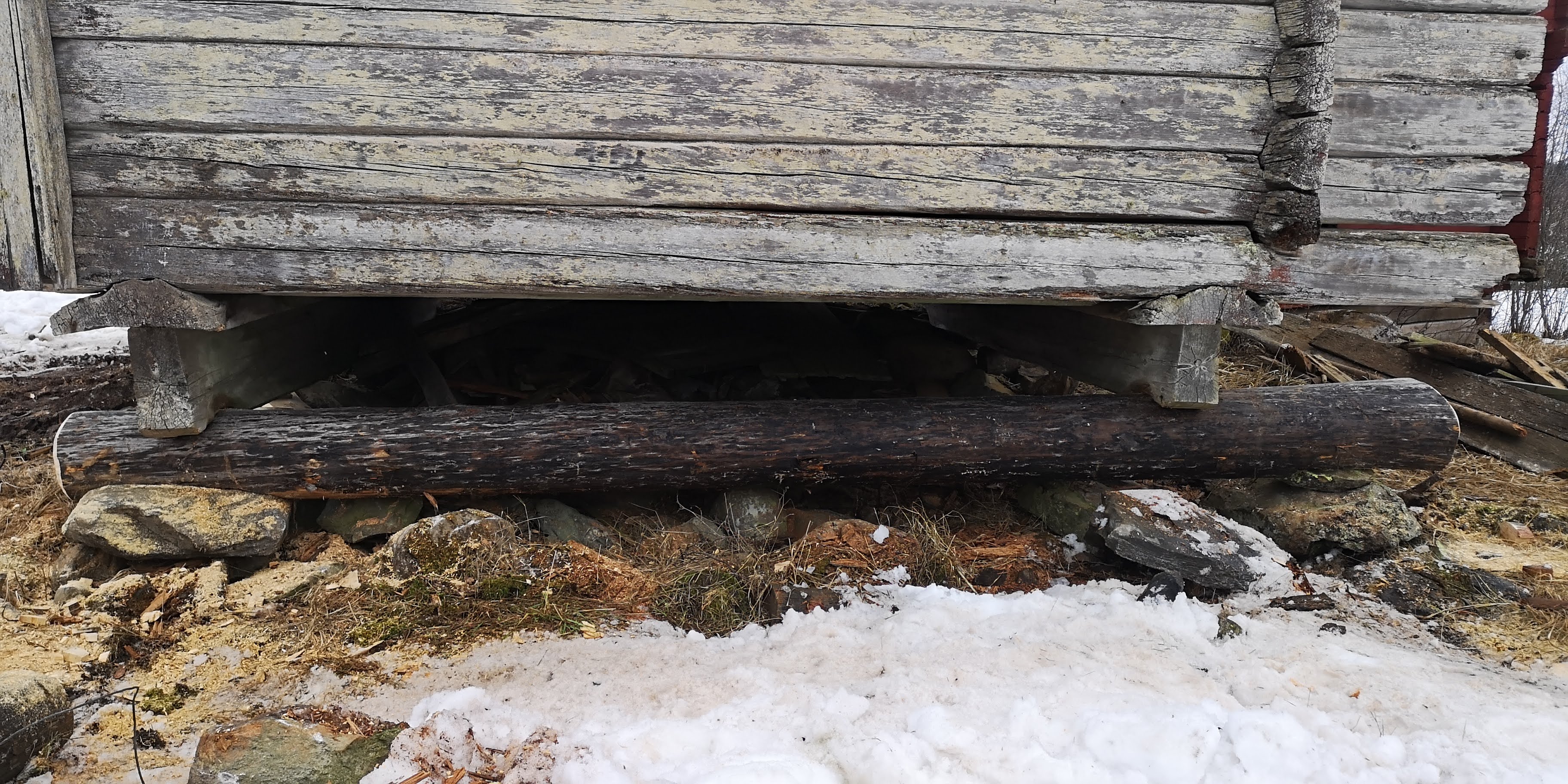 Aitta makaa uusien massiivisten tukipuiden päällä
