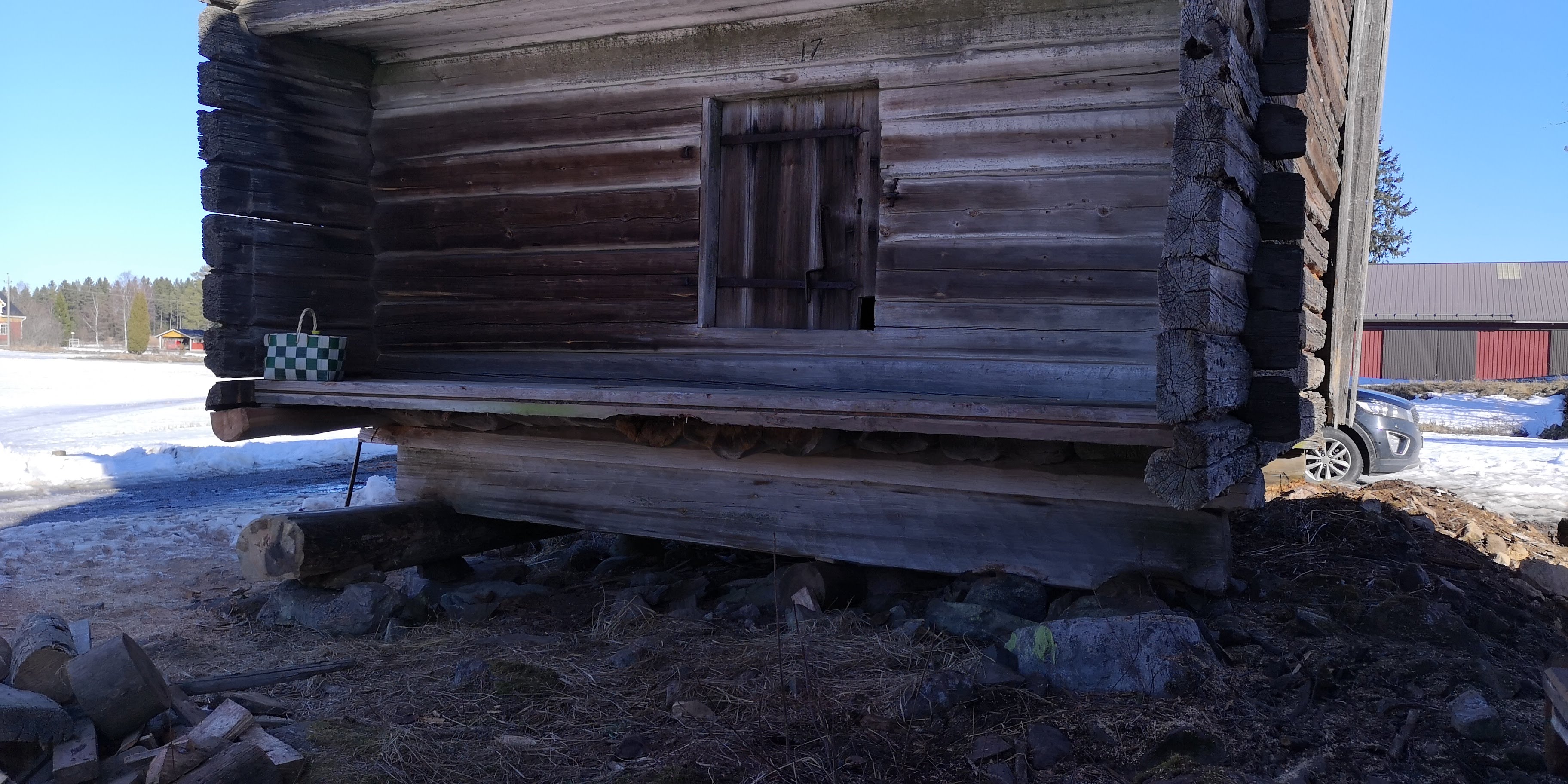 Aitta makaa uusien massiivisten tukipuiden päällä
