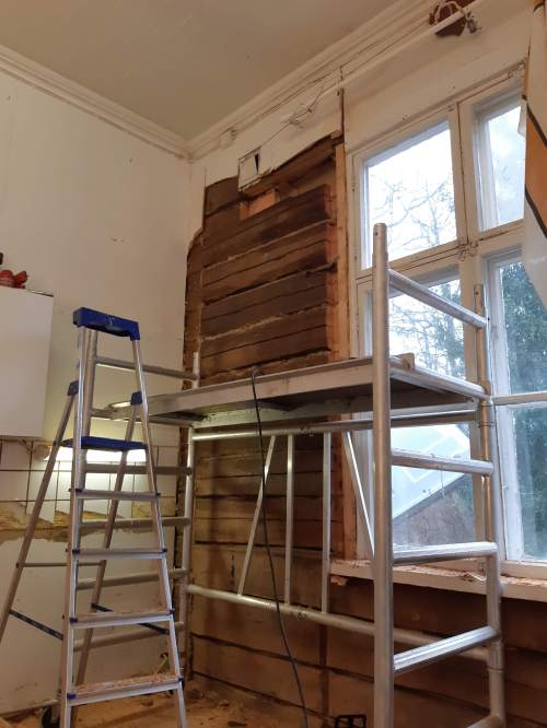 Uusi seinä tapetointia vaille valmis.