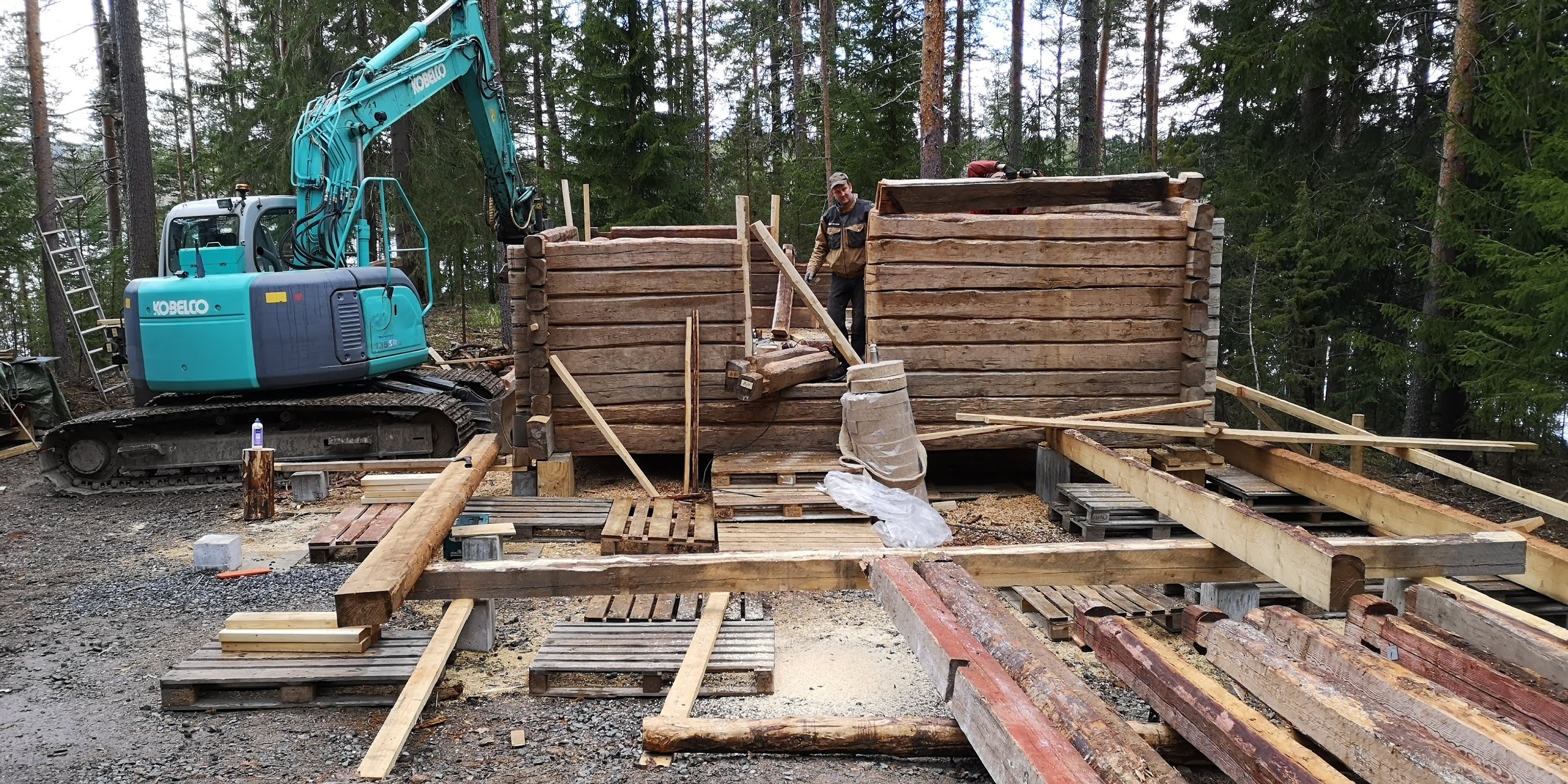 Vanhoista hirsistä käytetään käyttökelpoiset ja vaurioituneet hirret korvataan